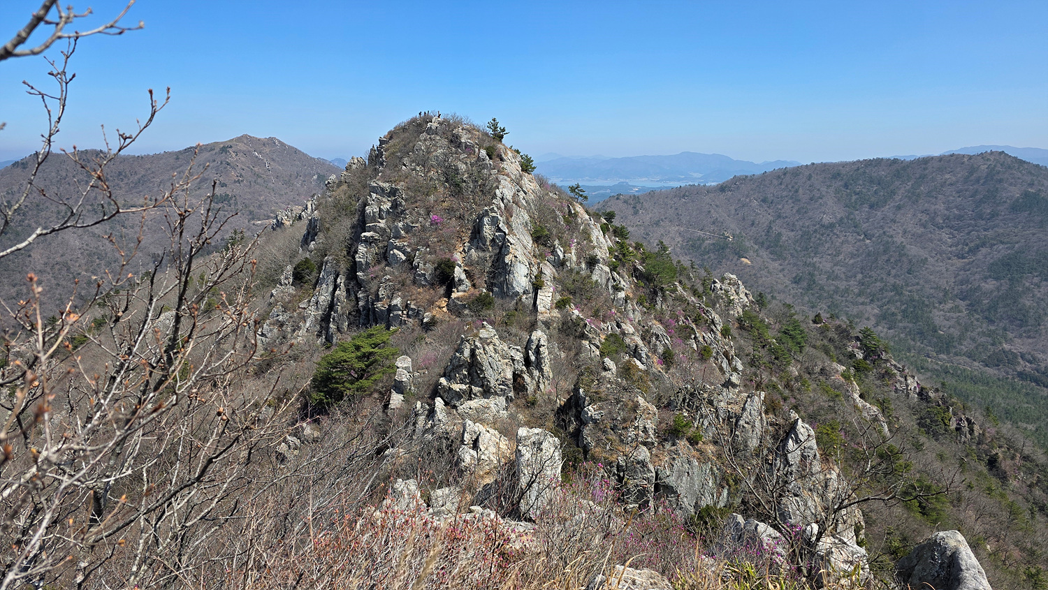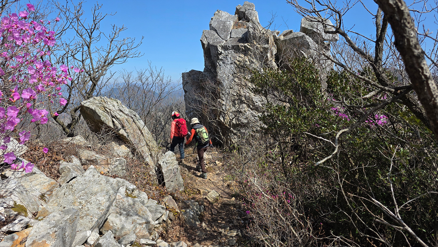 산행후기 : 오소재서 작천소령까지는 오로지 암릉구간이라 아직도 데크가 아닌 밧줄을 이용하여 등산하게 되어 있었다. 후미에 가면서 두륜산을 배경으로 진달래가 이제 막 피어나는 좋은 계절이었다. 하지만 암릉구간은 평지보다 많이 힘들었다. 오소재~작천소령 진달래 산행 잘 마치고 왔다.